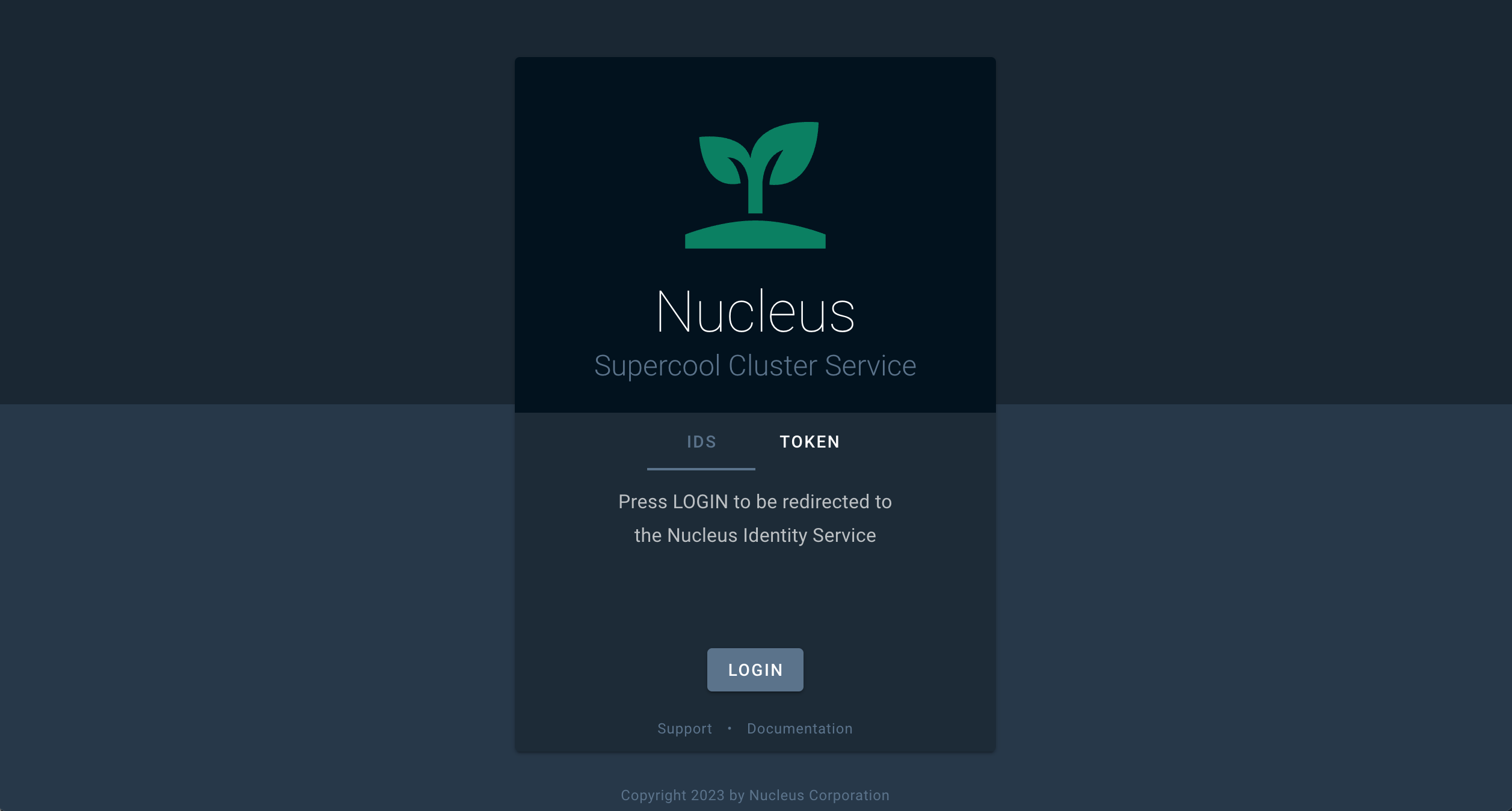 oidcLoginText: Press LOGIN to be redirected to the Nucleus Identity Service.